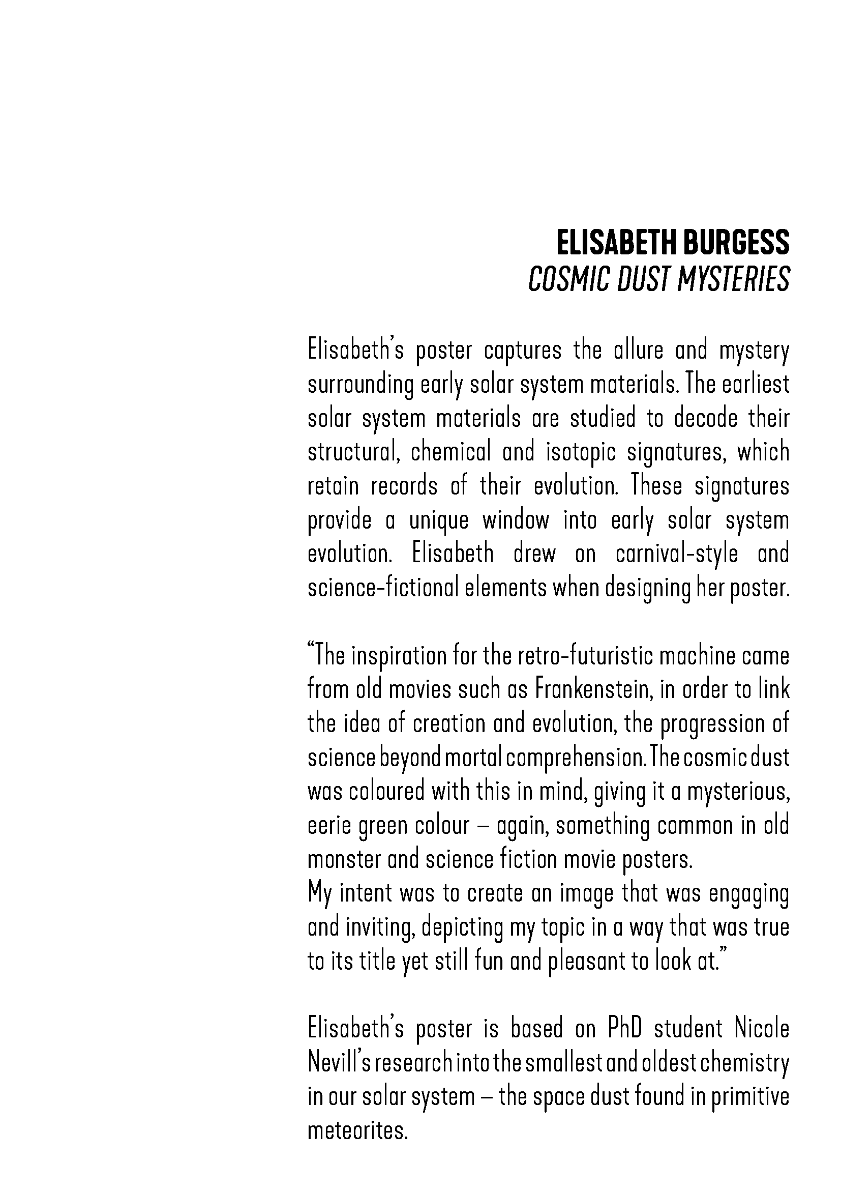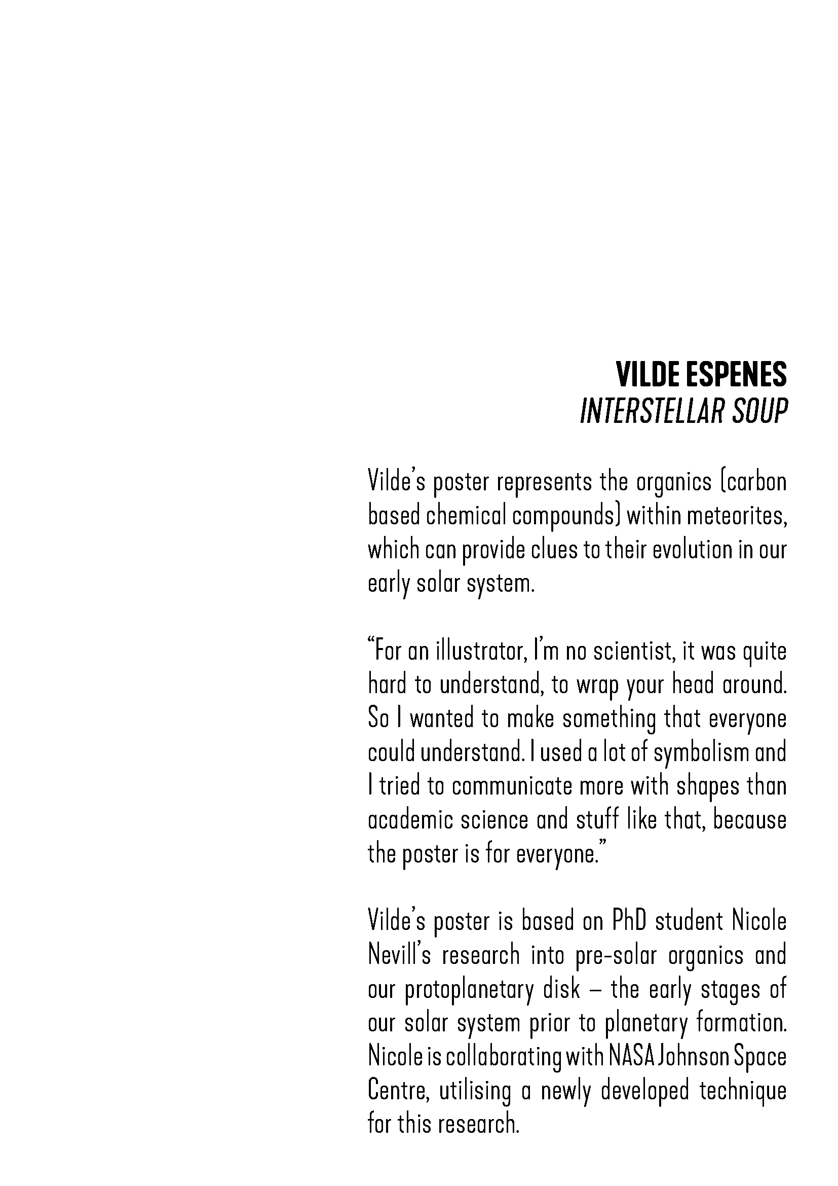 The exhibition is supported by interviews with the illustration students and planetary researchers as depicted in a short documentary, produced by Digital Cinema student Paula Roa and curation narrative by Creative Writing Honours student Josephine Newman.