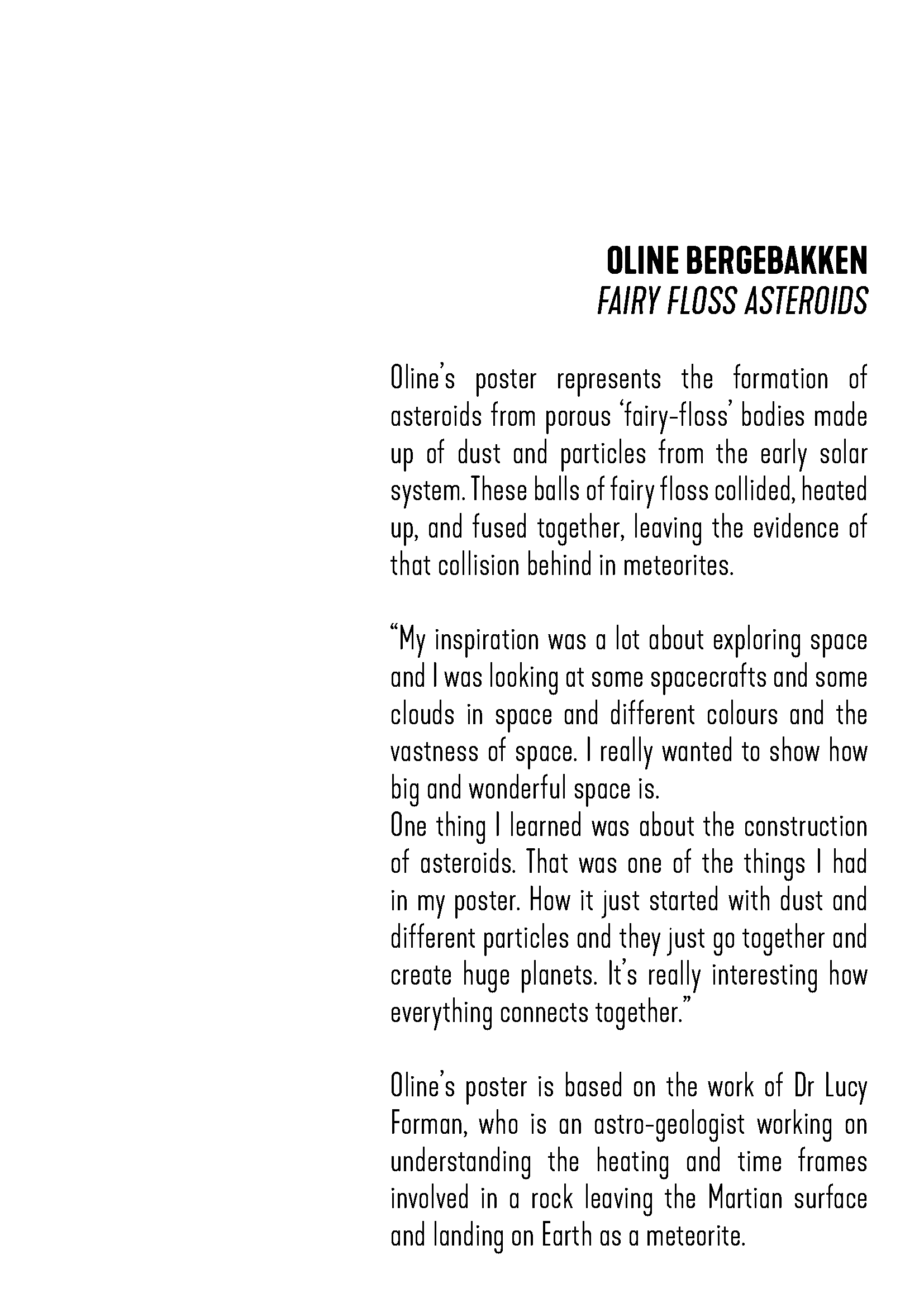 Drawing inspiration from the retro-futuristic styling of NASA’s Visions of the Future project, the students and researchers collaborated to produce illustrations that would effectively communicate the science to a wider audience, while remaining visually engaging and playful. The resulting posters cover a range of planetary research – from Marsquakes to Asteroid Anatomy and involvement in space exploration – demonstrating the integration of science and art in a single cohesive project.